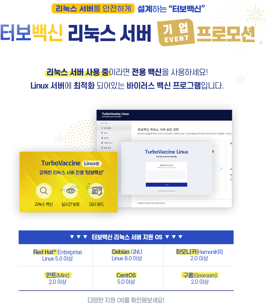 터보백신 리눅스 서버 구매하고, 기업 특별 프로모션 신청하세요!