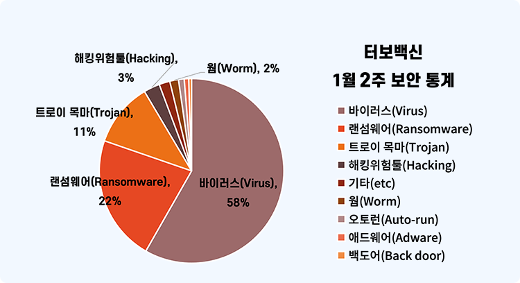 터보백신 탐지 보안 통계는 사용자 PC에서 탐지된 정보 기반으로 산출된 통계입니다.