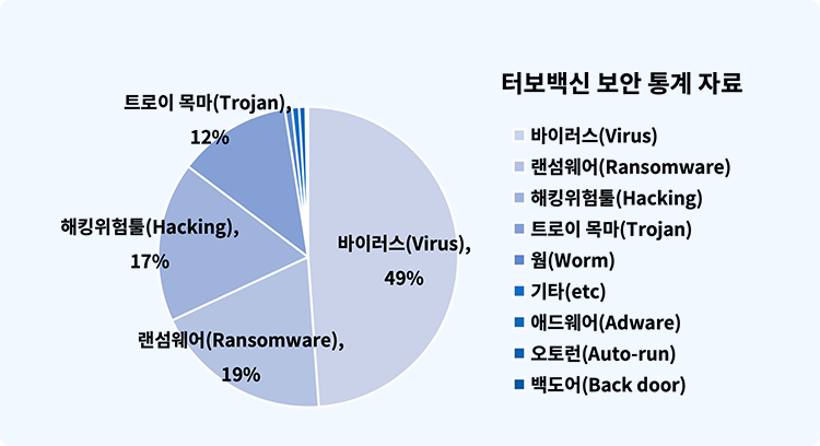 터보백신 탐지 보안 통계는 사용자 PC에서 탐지된 정보를 기반으로 산출된 통계 자료입니다.