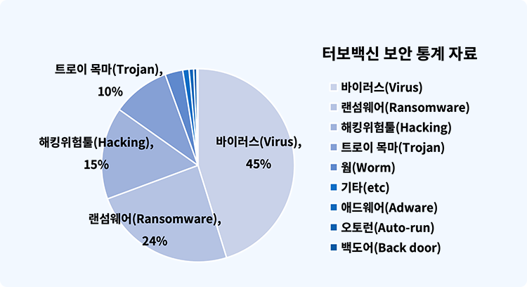 터보백신 탐지 보안 통계는 사용자 PC에서 탐지된 정보를 기반으로 산출된 통계 자료입니다.