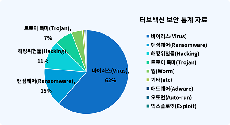 터보백신 탐지 보안 통계는 사용자 PC에서 탐지된 정보를 기반으로 산출된 통계 자료입니다.