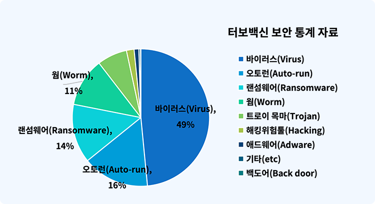 터보백신 탐지 보안 통계는 사용자 PC에서 탐지된 정보를 기반으로 산출된 통계 자료입니다.