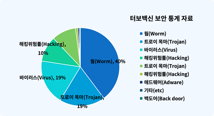 터보백신 탐지 보안 통계는 사용자 PC에서 탐지된 정보를 기반으로 산출된 통계 자료입니다.