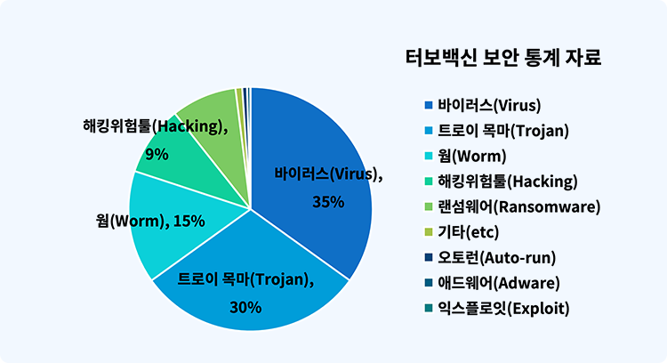 터보백신 탐지 보안 통계는 사용자 PC에서 탐지된 정보를 기반으로 산출된 통계 자료입니다.