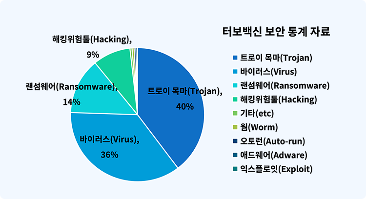터보백신 탐지 보안 통계는 사용자 PC에서 탐지된 정보를 기반으로 산출된 통계 자료입니다.