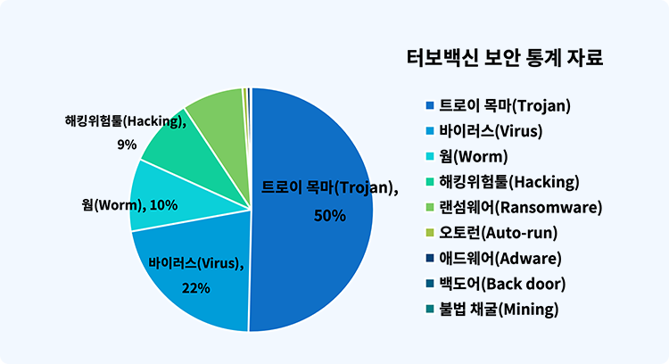 터보백신 탐지 보안 통계는 사용자 PC에서 탐지된 정보를 기반으로 산출된 통계 자료입니다.