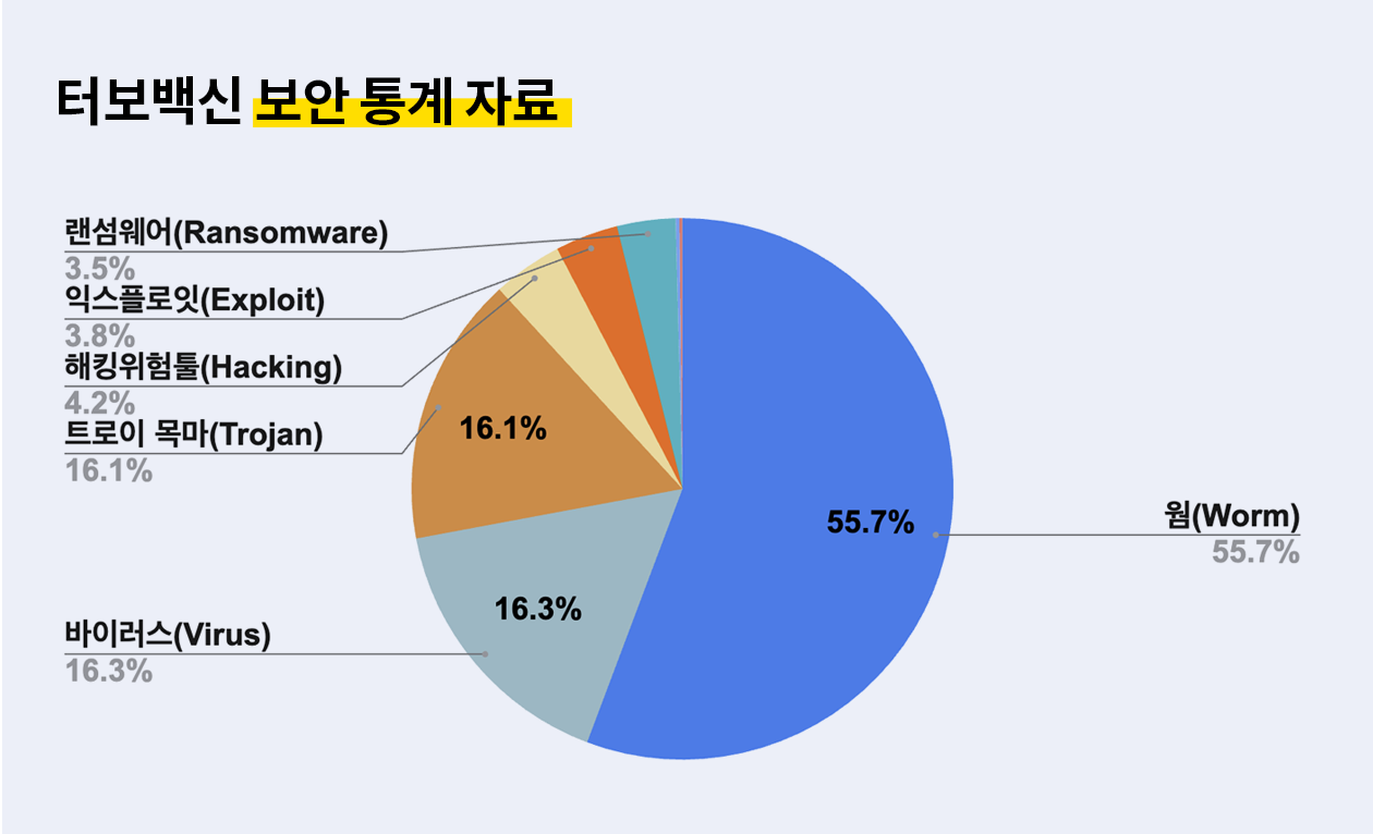 터보백신 탐지 보안 통계는 사용자 PC에서 탐지된 정보를 기반으로 산출된 통계 자료입니다.