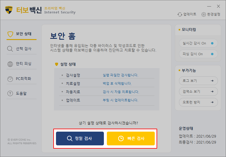 터보백신 검사 모드 선택
